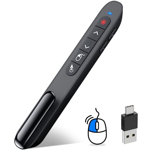 The DINOSTRIKE Presentation Clicker stands out with its dual compatibility through USB-A and USB-C ports, allowing seamless connection to a wide range of devices, including the latest laptops and Mac computers. This flexibility ensures users don’t have to worry about adapter compatibility during important presentations. Additionally, the inclusion of an Air Mouse Control feature enables intuitive pointer movements, making it easier to interact with the screen without needing a separate mouse.