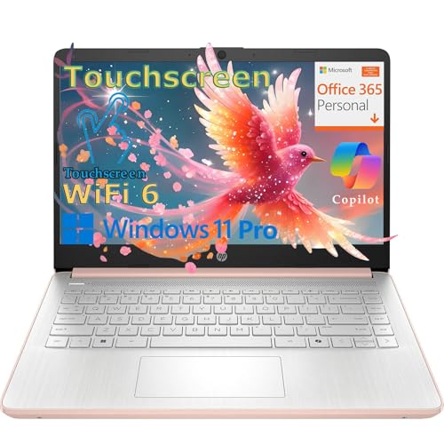 HP Touchscreen Laptop Computer for Home Student Study, 1-Year Office 365, Intel Processor, 14 inch Display, WiFi 6, Bluetooth, Pale Rose Gold, Windows 11 Pro S (16GB RAM, 512GB PCIe SSD)
