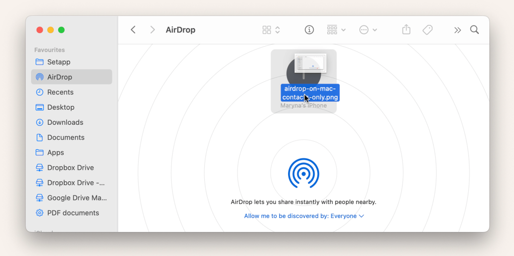 • Everyone:All nearby Apple devices can send files to you.